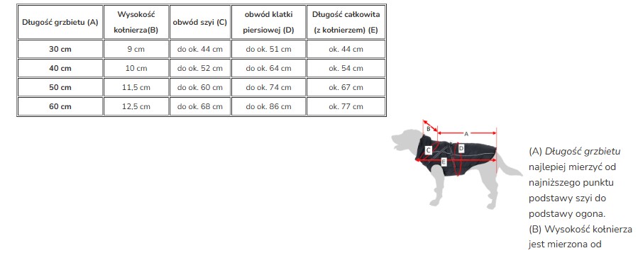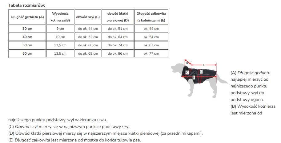 Zapięcie: zamek błyskawiczny (płaszcz dla psa), zapięcie na zatrzask (szelki).