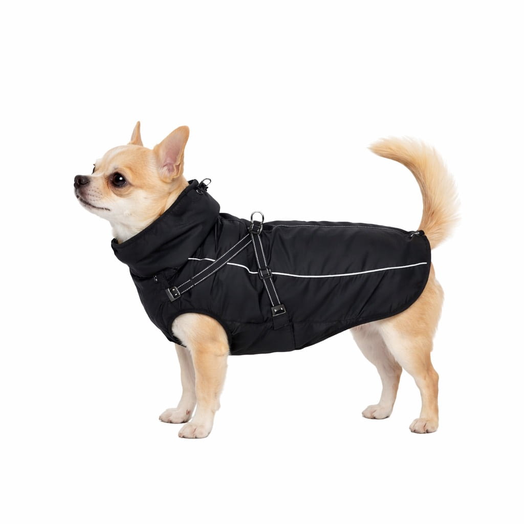 Ciepły płaszcz zimowy dla psa z zintegrowanymi szelkami: nie wymaga dodatkowych szelek ani obroży, w razie potrzeby można je zdjąć